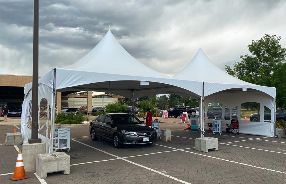 The tent was tested with wind blowing into the two open sides, and against two closed walls. When the wind was blowing into the tent, we deemed it to be partially enclosed and used an internal pressure coefficient of ±0.55. When the wind loading was against the closed side of the tent, we deemed it enclosed and we used an internal pressure coefficient of ±0.18, in accordance with IBC-2003.